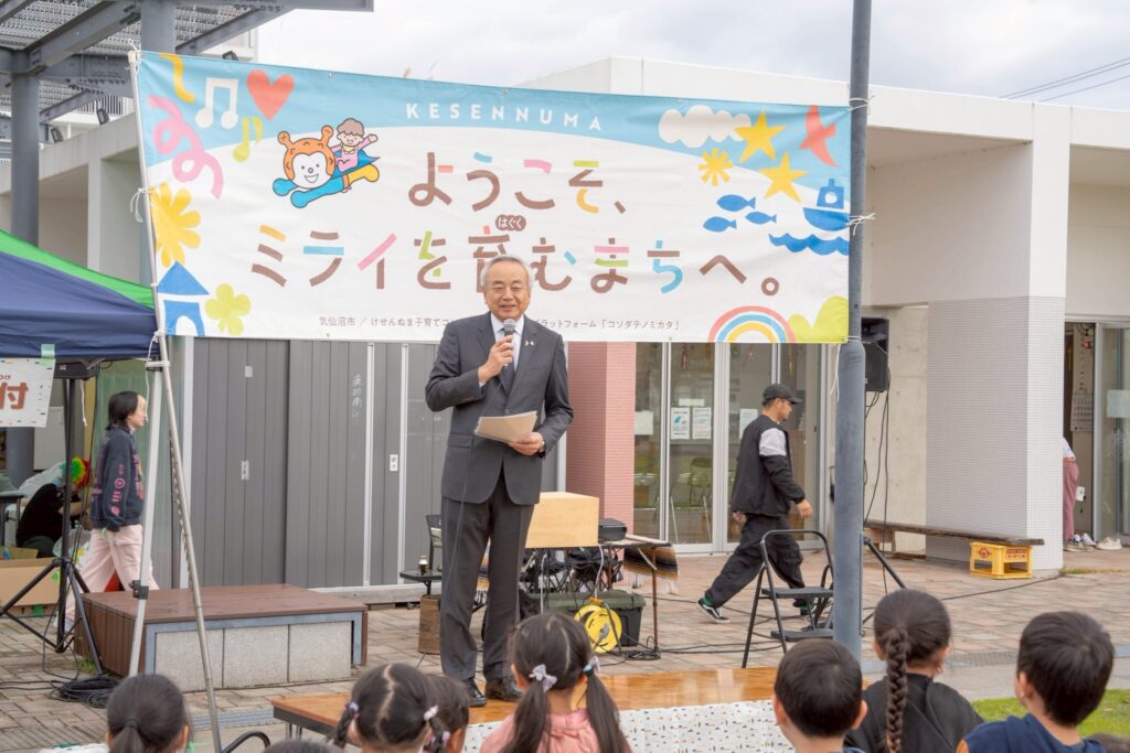 2025年11月3日(月祝)に開催した『けせんぬま子育て応援フェスタ2025』のオープニングセレモニーにて、菅原茂気仙沼市長よりタグライン(※)のお披露目がありました。